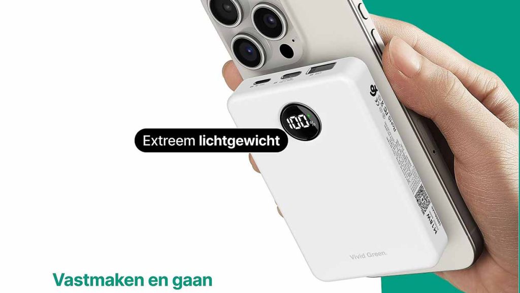 - De VIVID GREEN VG000892 Powerbank is de compacte, efficiënte oplossing voor dagelijks gebruik.